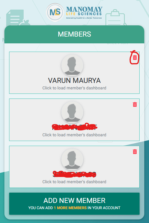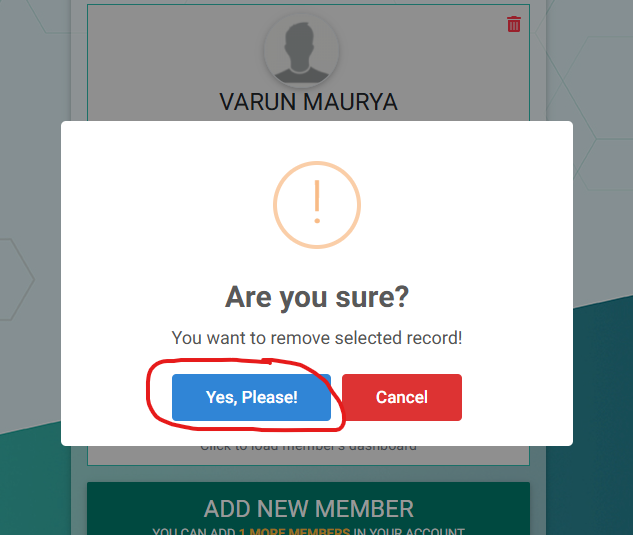 - On “Members List Screen“, Click on “Delete Icon” in front of the “Member Profile” you want to “Delete” (see the below image)